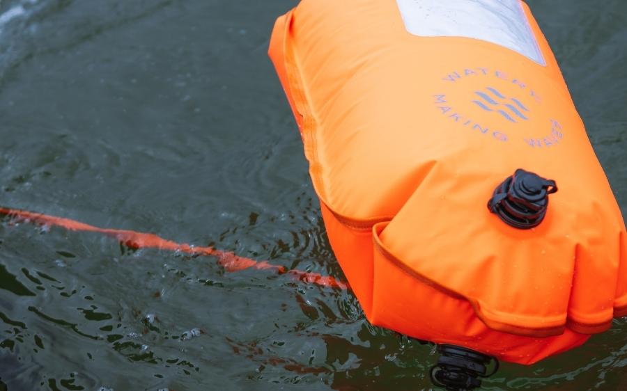 Med en svømmebag i vannet, i tillegg til synlighet for andre og en bærbar bag for alle eiendelene dine, tilfører du oppdrift under selve svømmeturen.