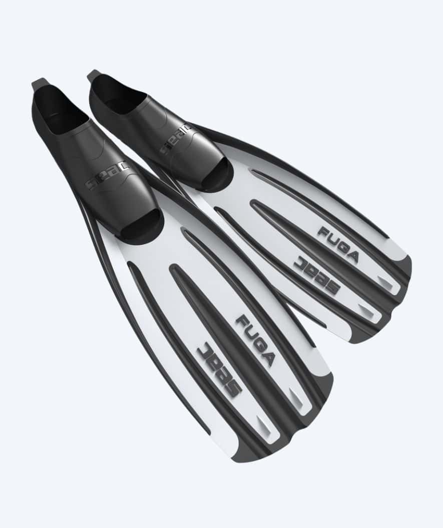 SEAC Fuga er dykkerføtter med lukket hæl, designet for å kunne brukes direkte på bare føtter. Den anatomiske fotlommen er laget av myk, men slitesterk termoplastisk gummi som naturlig former seg etter foten og gir en stabil og komfortabel passform uten trykkpunkter. Dette gjør dem spesielt egnet for lengre økter, hvor komfort er avgjørende.